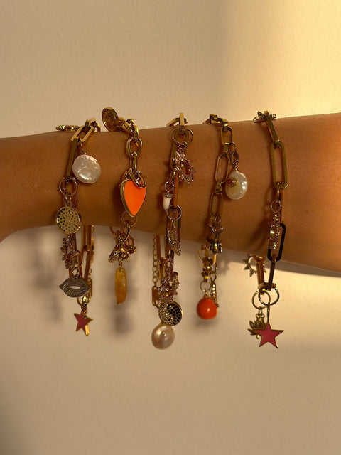 Our handmade phone and bag charms come in endless designs, bead styles, and colors. Each piece can be customized with your choice of charms — making it the perfect personalized gift.